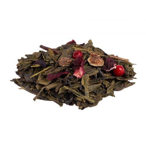 Ingrédients : Thé vert Sencha*, hibiscus*, China White Monkey*; arôme naturel de poire, pomme*, écorces de citron*, poivre rose*, arôme naturel de pomme verte, groseille*, arôme naturel de cassis, huile essentielle de citron vert*. *Issus de l’agriculture biologique.