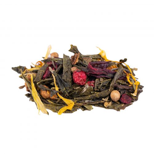 Ingrédients : Thé vert China Sencha, pomme, hibiscus, thé vert China Jasmin, coco , basilic, arôme naturel, graine de coriandre, groseille, souci. Mélange premium élaboré avec des ingrédients issus de l’agriculture durable et des arômes naturels.
